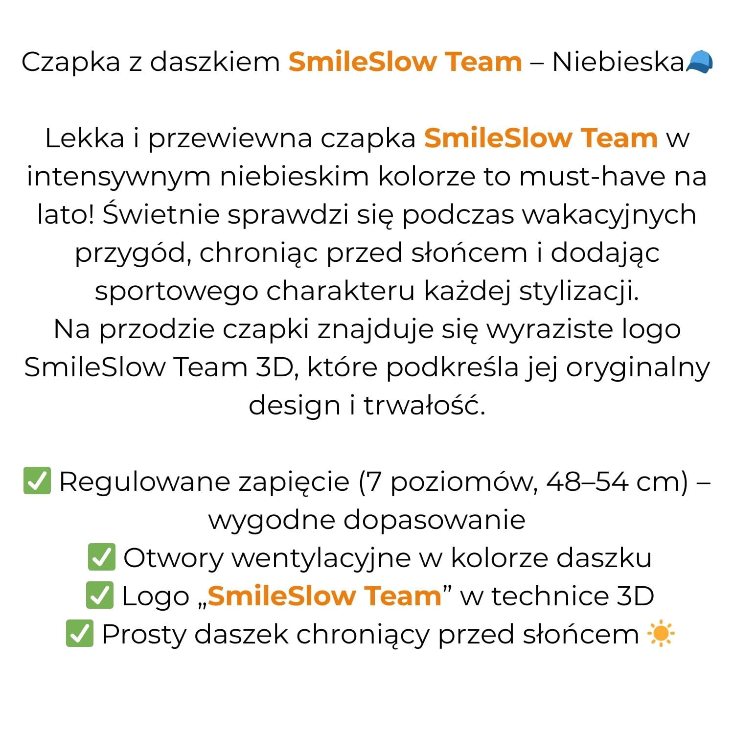 CZAPKA Z DASZKIEM SMILESLOW TEAM - NIEBIESKA - EMBLEMAT 3D